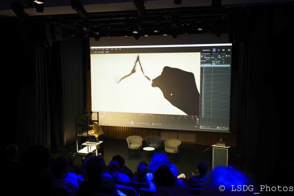 Le moment le plus spectaculaire de la journée est sans doute venu ensuite. Devant un public captivé, Naomi Van Niekerk a proposé une démonstration d’animation sur sable en direct. Une performance aussi pédagogique qu’hypnotique. Questions du public, réponses dessinées en temps réel, textures façonnées sous les doigts : chacun pouvait observer comment naît une animation organique et fluide. Dans la salle, des fragments de pellicule 35 mm circulaient également, révélant le travail minutieux de retouche manuelle effectué par l’artiste.